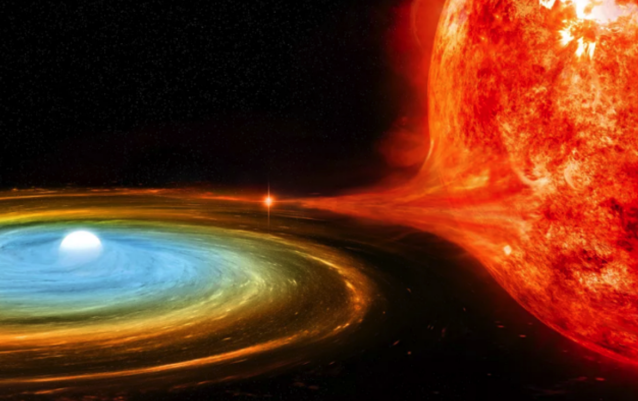 图5. “吸血鬼”白矮星正吸汲伴星的物质(NASA)