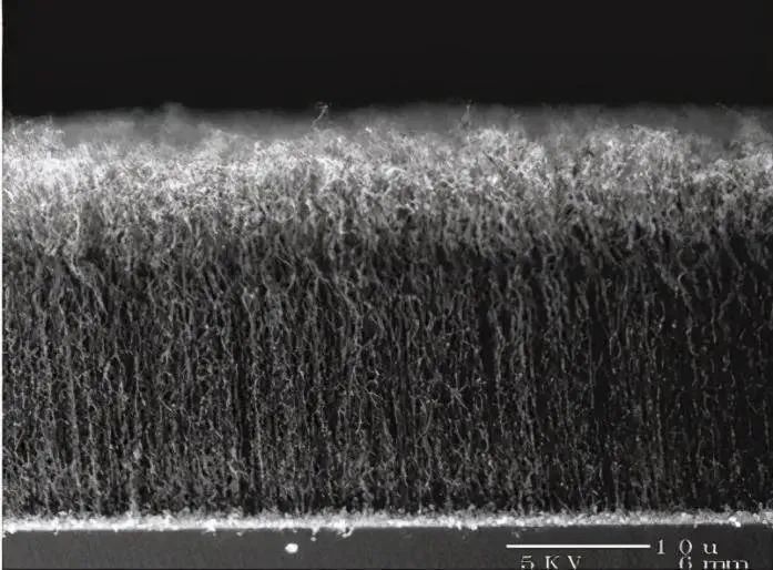 2014年,科学家们居然研制出这样一种材料,它是由碳毫微管组成的,每个碳毫微管都只有人类头发的万分之一细,当光线一进入纳米管之间的间隙,就会立即被捕获并被吸收,能“吃掉”99.96的光线,和黑洞接近。(图14)