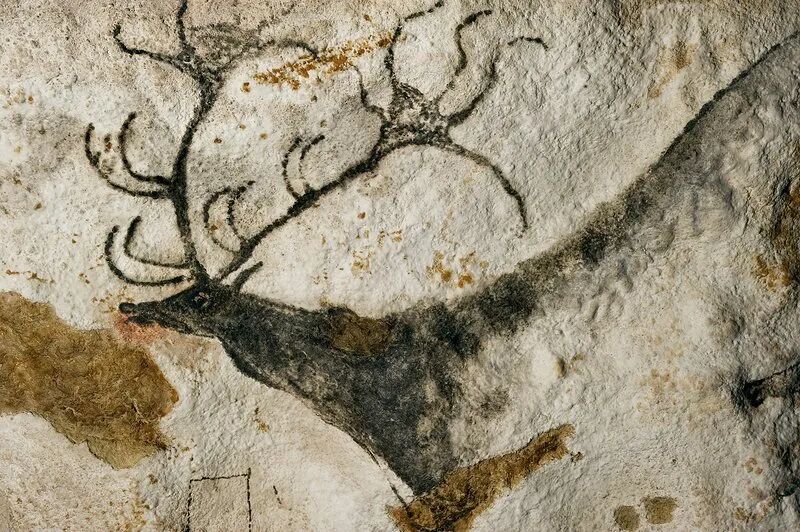 黑色在世界各地文化中的词根词源里,都有“燃烧”一义(如拉丁语、古希腊语、古日耳曼语、古印欧语等)。从人类最早的绘画作品中发现,18,000至17,000年前旧石器时代的人们,从燃烧后的木炭中,或研磨氧化锰矿石(MnO)来获得黑色颜料(图1)。