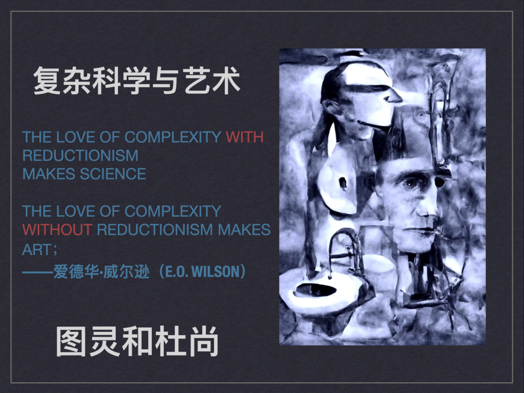 我们可以看到,从复杂视角看待当代艺术,不仅艺术是一种涌现,对艺术的审美体验也是意识和艺术共同涌现完成的。艺术从古典式的静观、模仿现代的表现、交互,其中往往伴随着复杂系统的对称性破缺、自组织和涌现等过程。复杂科学和艺术结合,使得艺术在相当程度上摆脱了还原论的影响,能够拥抱更多混沌和不确定性。 在2017年出版的《Art in the Age of Emergence》一书中,认为涌现所描述的复杂系统形式特征,及考虑涌现和意识关系,既基于科学研究,又为精神性提供了空间,可以特别适合理解艺术创造的过程,从而填补了后现代下对艺术理解的空白。 在2008年《The Art of Artificial Evolution: A Handbook on Evolutionary Art and Music》中,也提出复杂主义(Complexism)可以作为演化艺术的一种新的实践纲领。 尽管我们并不清楚,基于复杂科学和艺术在理念和实践结合的尝试是否能为促进对艺术的全新和发展,但至少我们已经看到这种可能,以及正在发生和探索的这些新方向。在诸多艺术领域,正在发生的这些转变和探索,都值得我们去关注和探索。最后让我们以社会生物学家爱德华·威尔逊的话来作为本篇结尾:The love of complexity with reductionism makes science;The love of complexity without reductionism makes art. —— E.O. Wilson