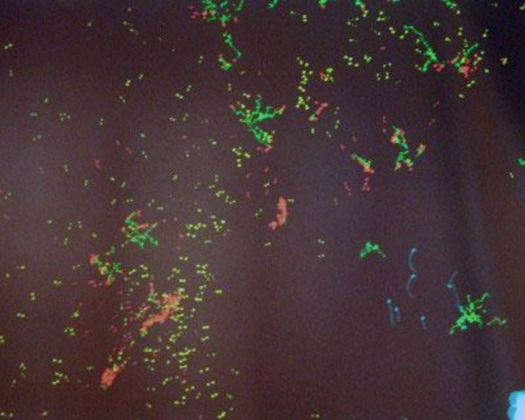 以上,λ变化就能得到四种元胞自动机之间转化过程,即:固定点->周期->复杂->混沌,其中第三类处于复杂状态的元胞自动机正好处于混沌与秩序的边缘,在这种状态下系统兼具稳定和活力。 后面我们会看到,很多有趣的跨媒介和交互艺术品,往往都处于这种状态。