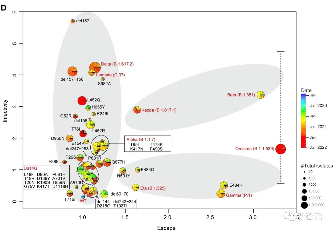 研究人员对一千一百多万个新冠病毒序列进行了全面研究,结果表明SARS-CoV-2刺突蛋白(S蛋白)不是随机进化的,其进化路径有三种:高细胞感染性+低免疫逃逸能力、低细胞感染性+高免疫逃逸能力和高细胞感染性+高免疫逃逸能力。