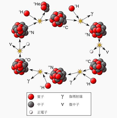 在这样的宇宙中,一旦通过上述方法生成了微量重元素,之后的恒星就能通过另一条途径完成核燃烧。这个过程被称为碳氮氧循环(carbon-nitrogen-oxygen cycle,简称CNO循环),该循环不需要氘核作为中间产物参与反应,取而代之的是碳原子,碳原子在反应中起到催化剂的作用,加速氦的生成。碳氮氧循环也存在于太阳内部,为太阳提供了一小部分的能量。在氘核不能稳定存在的情况下,碳氮氧循环将会支配整个能量生成的过程,同时该循环也不会妨碍其他的核产能途径。恒星还能通过一种类似于3氦过程(生成碳原子核)的3核子反应(triple-nucleon process)生成氦。总之,就算别的宇宙没有氘核,恒星也还有太多方法获得足够的能量和多种多样的原子核。