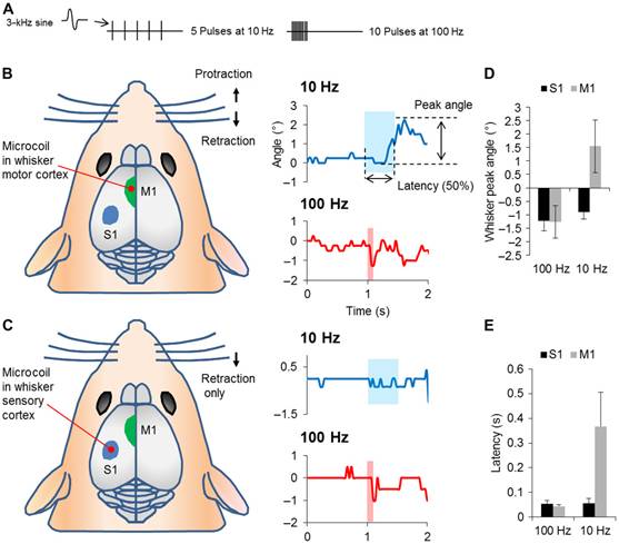 使用10-100Hz的电磁波刺激小白鼠大脑皮层,来激活其神经元回路