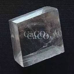 图5. 方解石晶体具有双折射性质,透过方解石可以看到重影