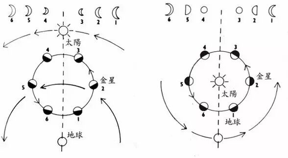 5.  金星、水星都呈现跟月亮一样的位相变化;