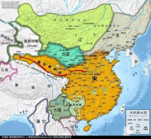 宋哲宗于1085年即位,启用新党,让朝局为之一新,宋朝达到鼎盛。宋哲宗时,宋军开拓了河西走廊地区,收复青海河湟等地,宋军先锋进军到西域,使宋朝疆域达到顶峰。并击败西夏军主力,让西夏臣服。可惜,1100年,宋哲宗去世,昏君宋徽宗即位。