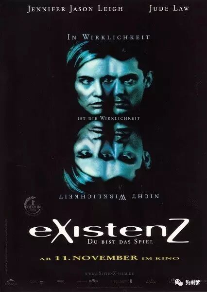 (3)《感官游戏》(Existenz),1999年上映;该片讲述了游戏设计者爱丽拉和一位警卫为了躲避追杀进入游戏世界,在虚拟现实中经历的一场冒险。
