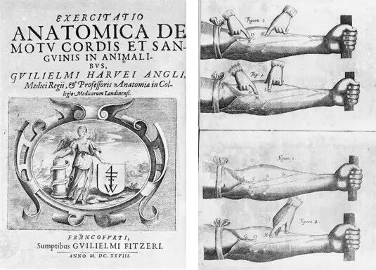 维萨留斯的学术继承人中,贡献最大的是发现人体血液循环规律的英国医生哈维(William Harvey,1578-1657)。哈维曾在帕多瓦大学跟随法布里修斯学习,后来在伦敦行医并担任皇家医学院伦姆雷讲座的主讲。据说他在演讲时告诉学生们,自己亲自解剖过父亲、姐姐和表姐夫的尸体,说父亲的腹腔里取出了大量结肠,姐姐的脾脏非常重等等。