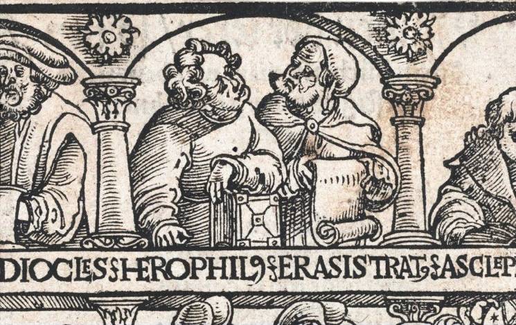 希罗菲卢斯和埃拉希斯特拉图斯,木版(年代不详)(图片来源:Wellcome Images)