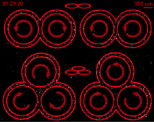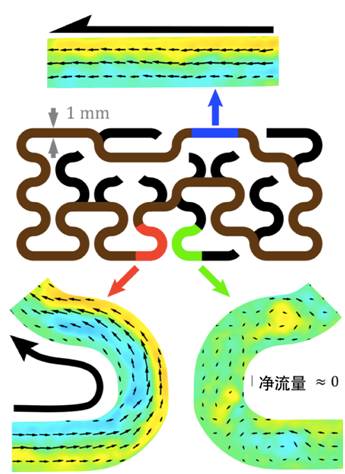 本来,这些微管的运动可以带动一些湍流也没什么神奇的。然而,科学家忽然在实验中发现,如果把这种流体放置于一些特定的三维流道结构中,微管运动产生的小湍流竟然可以自己组织(self-organize),形成沿着同一方向平行流动的宏观流体!