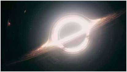 图一:电影星际穿越当中的黑洞,周围的亮环是由气体构成的吸积盘。